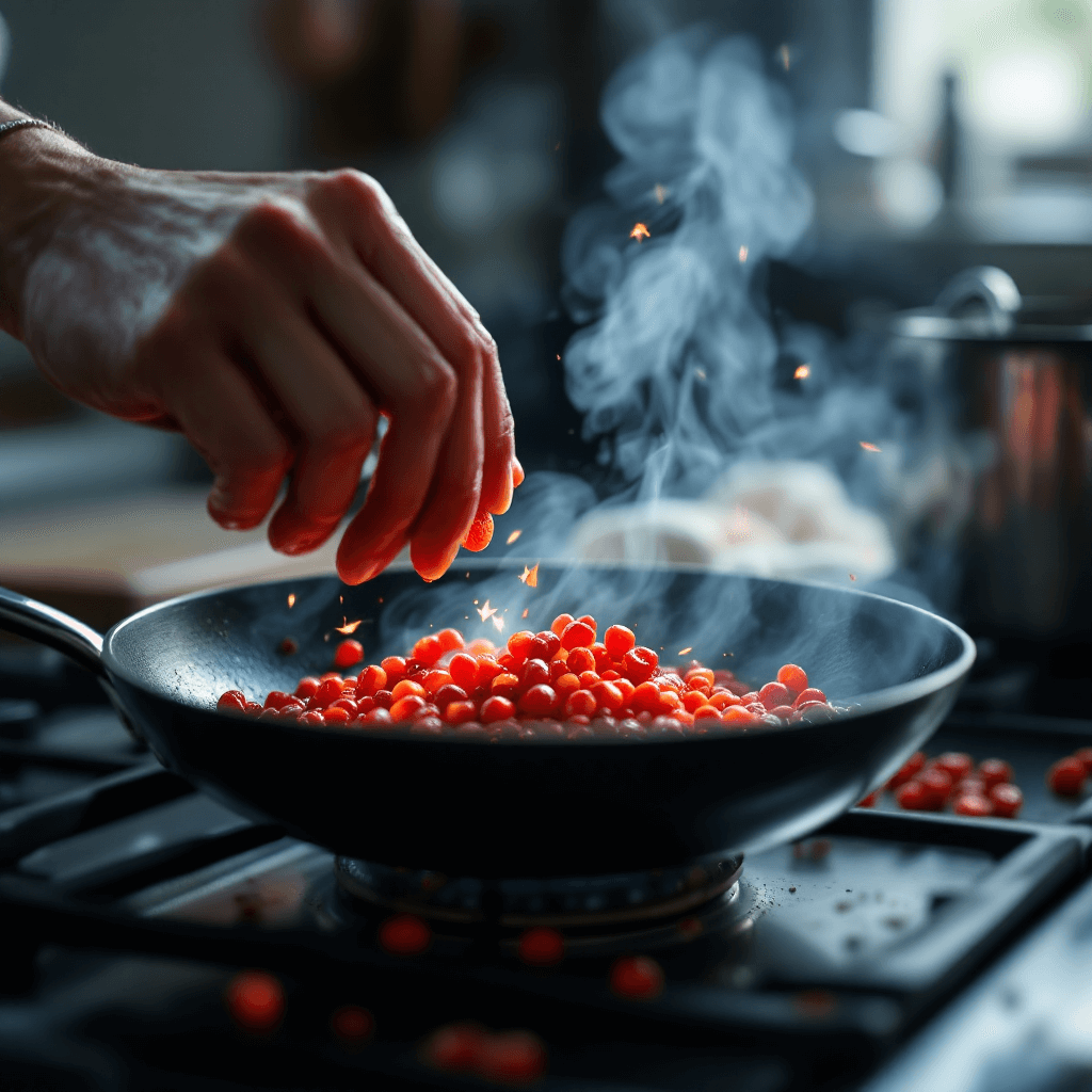말린 구기자는 겉에 먼지가 있을 수 있으니 흐르는 물에 가볍게 헹궈주세요. 여기서 중요한 팁은 물기를 뺀 구기자를 마른 팬에 살짝 볶아주는 겁니다. 약불에서 겉면이 살짝 노릇해질 정도로만 볶아주면 구기자 특유의 비린 맛은 사라지고 구수한 풍미가 훨씬 진해집니다.