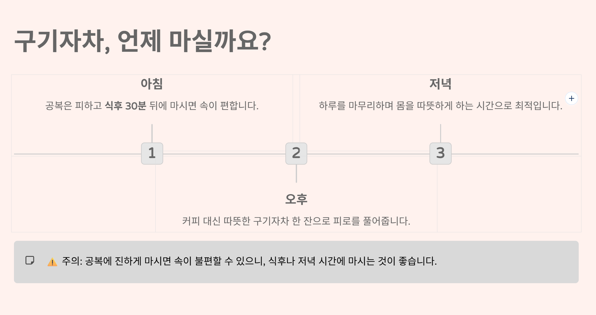 공복에 진하게 마시면 속이 불편할 수 있어, 아침보다는 식후나 저녁에 마시는 게 편했습니다.