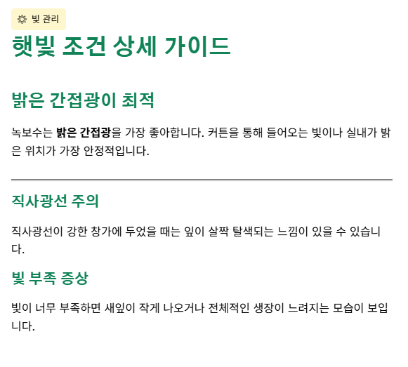 - 잎 색이 옅어질 때: 빛 부족이나 영양 부족을 의심해볼 수 있었습니다.