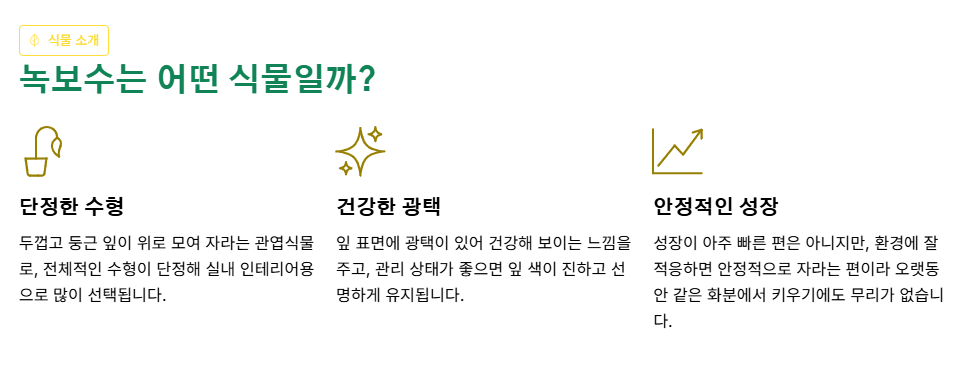 녹보수를 키우면서 느낀 점은, 식물 관리에서 중요한 건 많이 해주는 것이 아니라 적당히 지켜보는 것이라는 사실이었습니다. 물을 아끼고, 자리를 안정적으로 유지해주는 것만으로도 녹보수는 충분히 건강하게 자랐습니다.