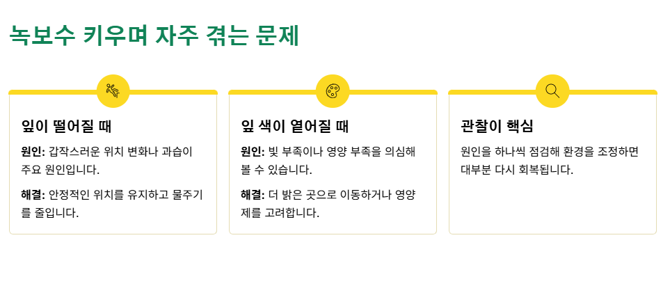 녹보수 키우며 자주 겪는 문제