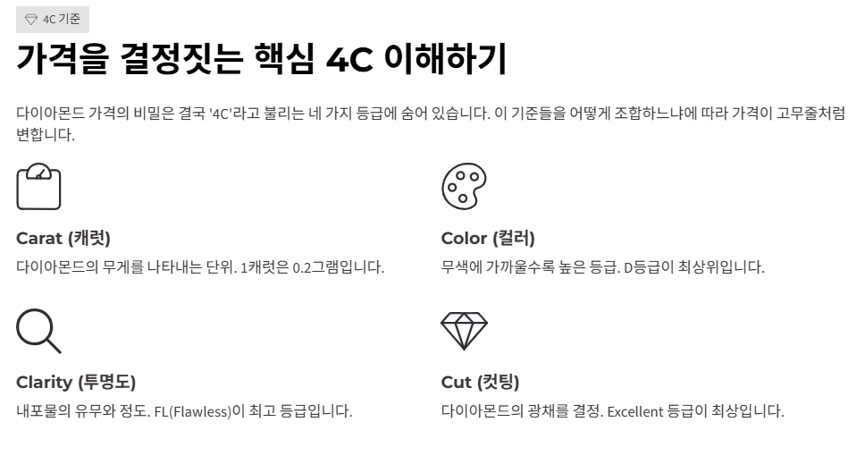 1캐럿 가격을 결정짓는 핵심 4C 이해하기