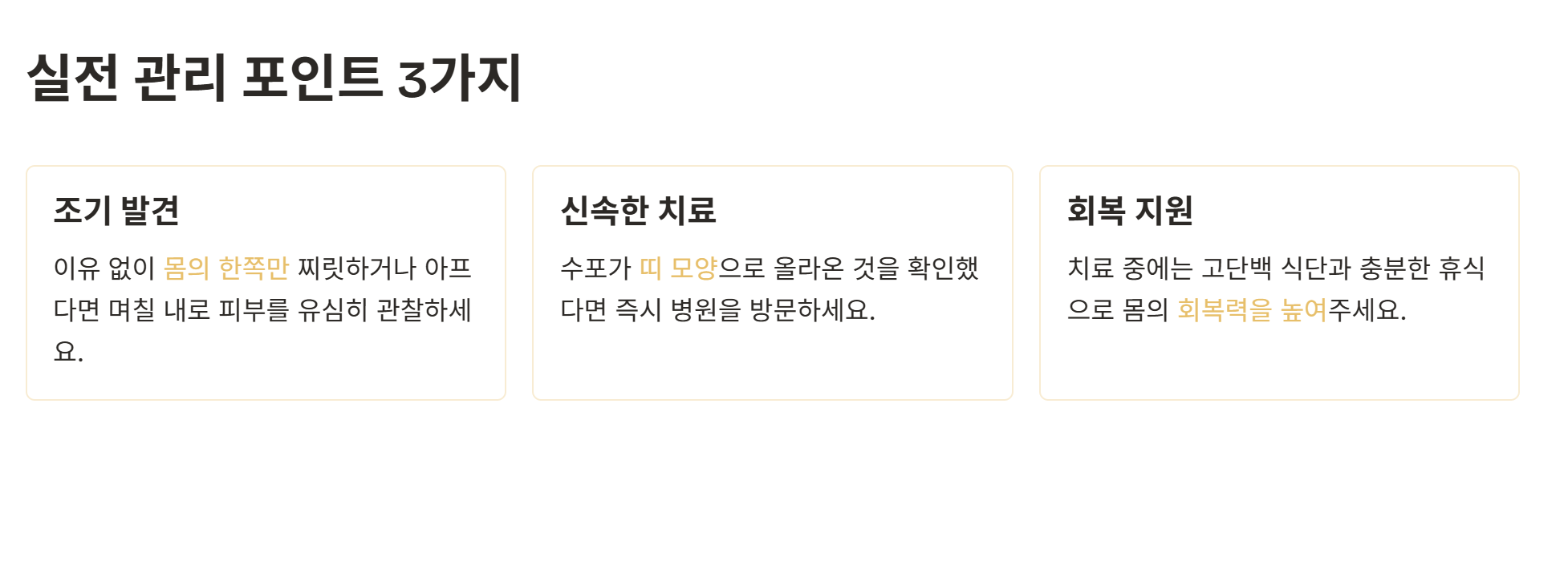 대상포진은 우리 몸이 "지금 너무 힘들어서 쉬어야 해!"라고 보내는 아주 강력한 경고장입니다. 통증 때문에 마음까지 약해지기 쉽지만, 초기에 적극적으로 치료하면 충분히 이겨낼 수 있는 병이기도 해요.