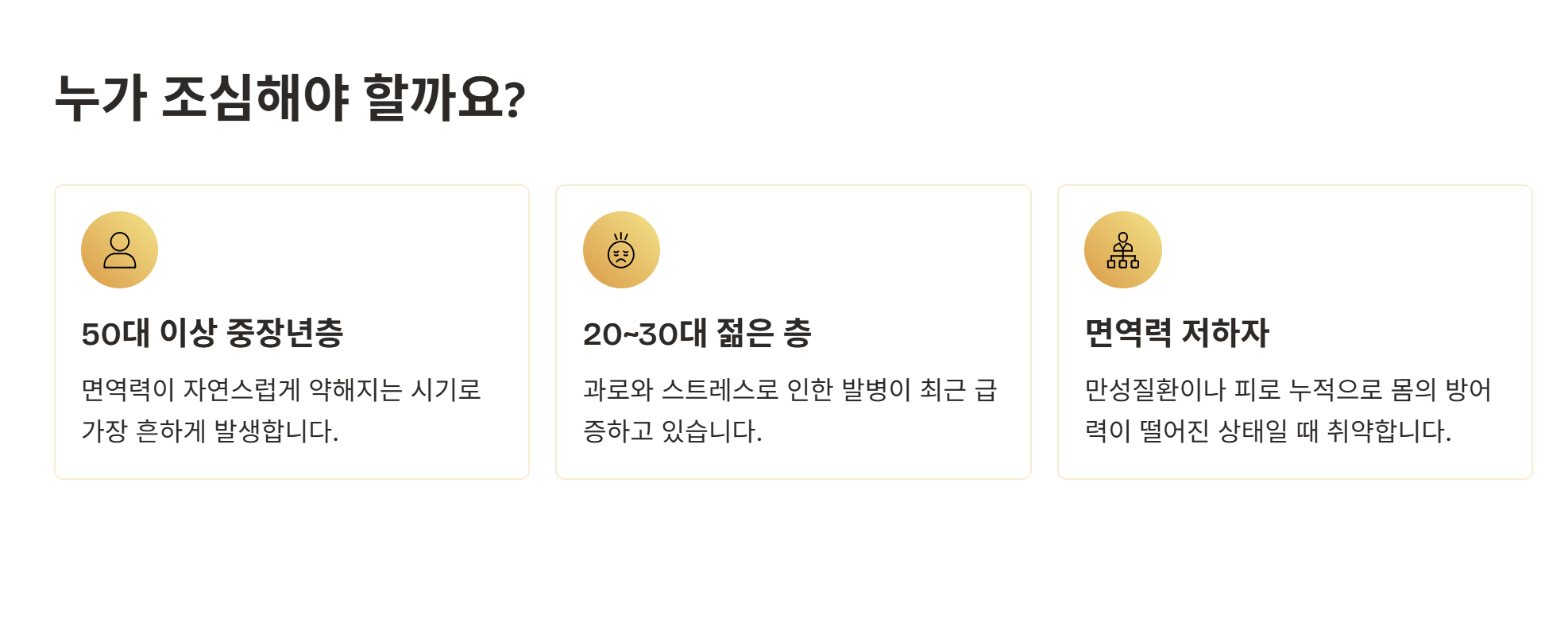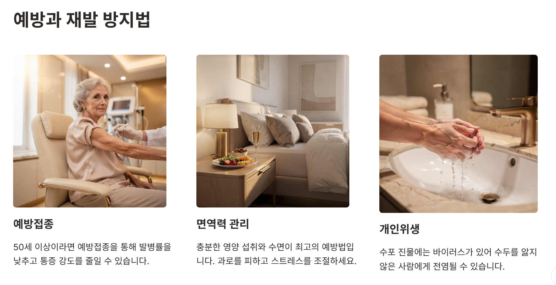 한 번 겪고 나면 다시는 경험하고 싶지 않은 것이 대상포진이죠. 완치 후에도 면역 관리는 필수입니다.