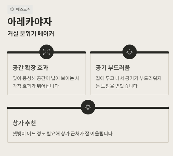 식물을 들인 이후 공간이 훨씬 살아 있는 느낌이 들었고, 관리 부담이 크지 않은 종류를 고르면 생활에 자연스럽게 녹아든다고 느꼈습니다.