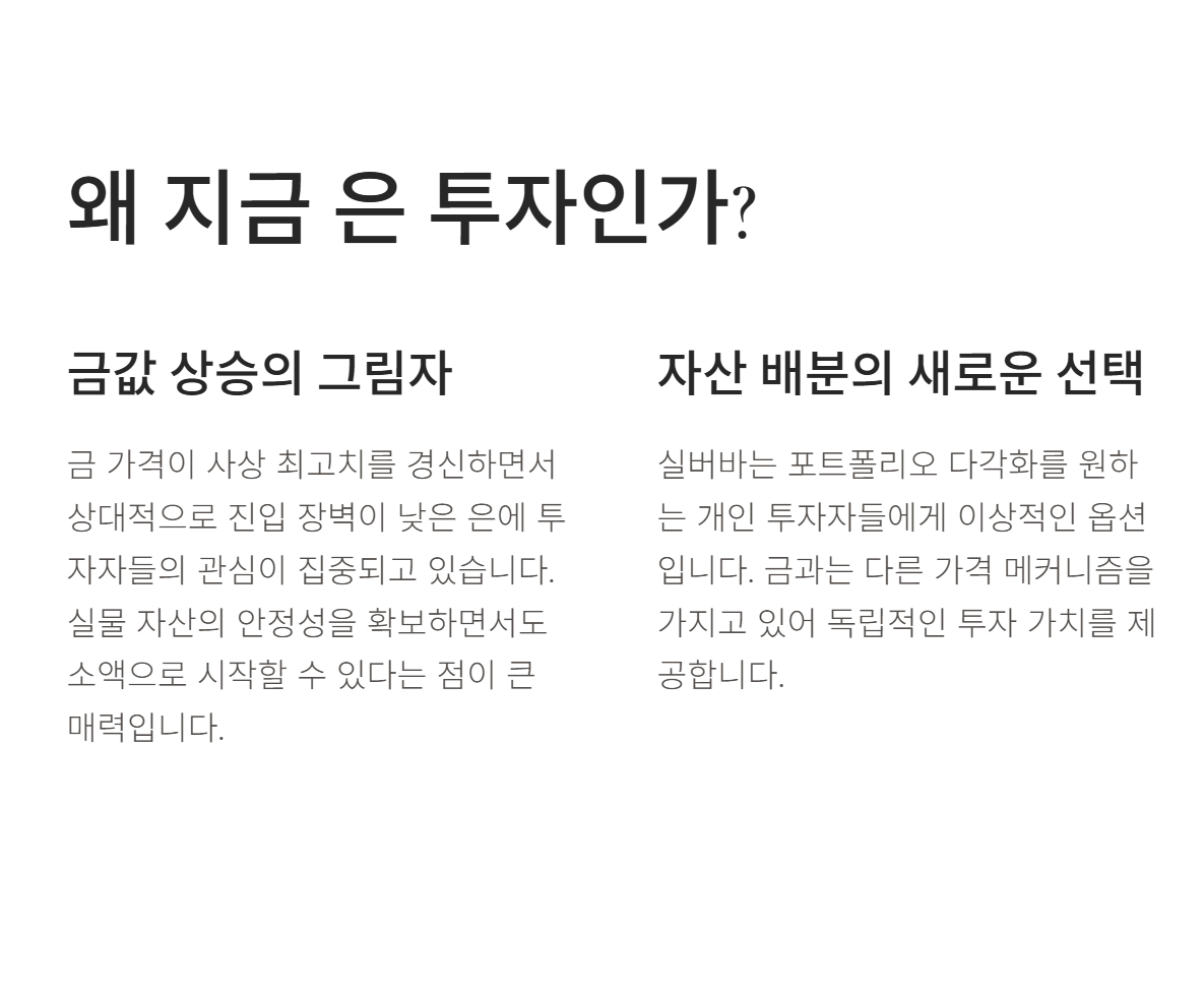 요즘 금값이 정말 무섭게 치솟으면서 상대적으로 진입 장벽이 낮은 은 투자에 관심을 갖는 분들이 부쩍 늘었습니다. 저 역시 자산 배분 차원에서 금을 눈여겨보다가, 실물 자산의 매력은 챙기면서 소액으로도 시작할 수 있는 실버바 시세에 자연스럽게 관심을 갖게 되었는데요.