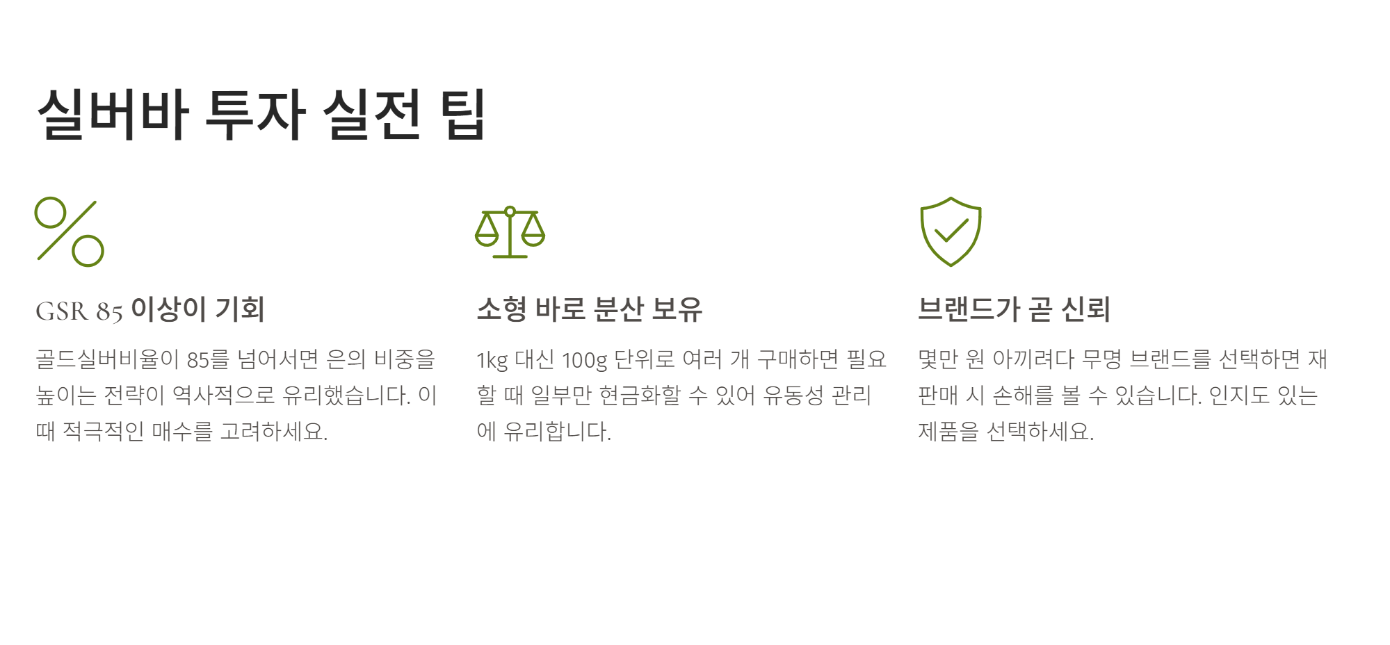 - 실전 팁 1: 골드실버비율이 85 이상일 때 은의 비중을 높이는 전략이 유리합니다.