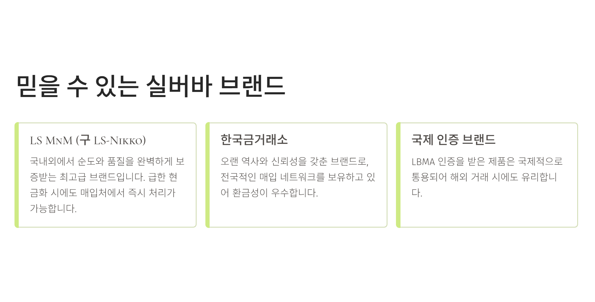 시중에는 정말 다양한 실버바가 유통되고 있습니다. 흔히 'LS-Nikko(현 LS MnM)' 제품을 최고로 쳐주는데, 그 이유는 국내외에서 순도와 품질을 완벽하게 보증받기 때문입니다. 나중에 급하게 현금화해야 할 때 브랜드 인지도가 높으면 매입처에서 까다롭게 굴지 않고 바로 처리를 해주더라고요.
