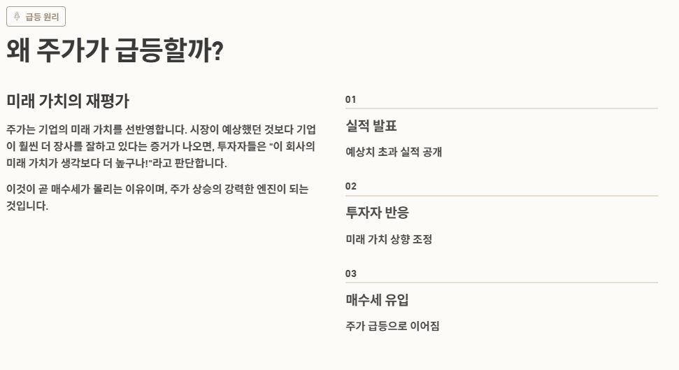 주가는 기업의 미래 가치를 선반영합니다. 시장이 예상했던 것보다 기업이 훨씬 더 장사를 잘하고 있다는 증거가 나오면, 투자자들은 "이 회사의 미래 가치가 생각보다 더 높구나!"라고 판단하며 매수세가 몰리게 됩니다. 이것이 곧 주가 상승의 강력한 엔진이 되는 것이죠.