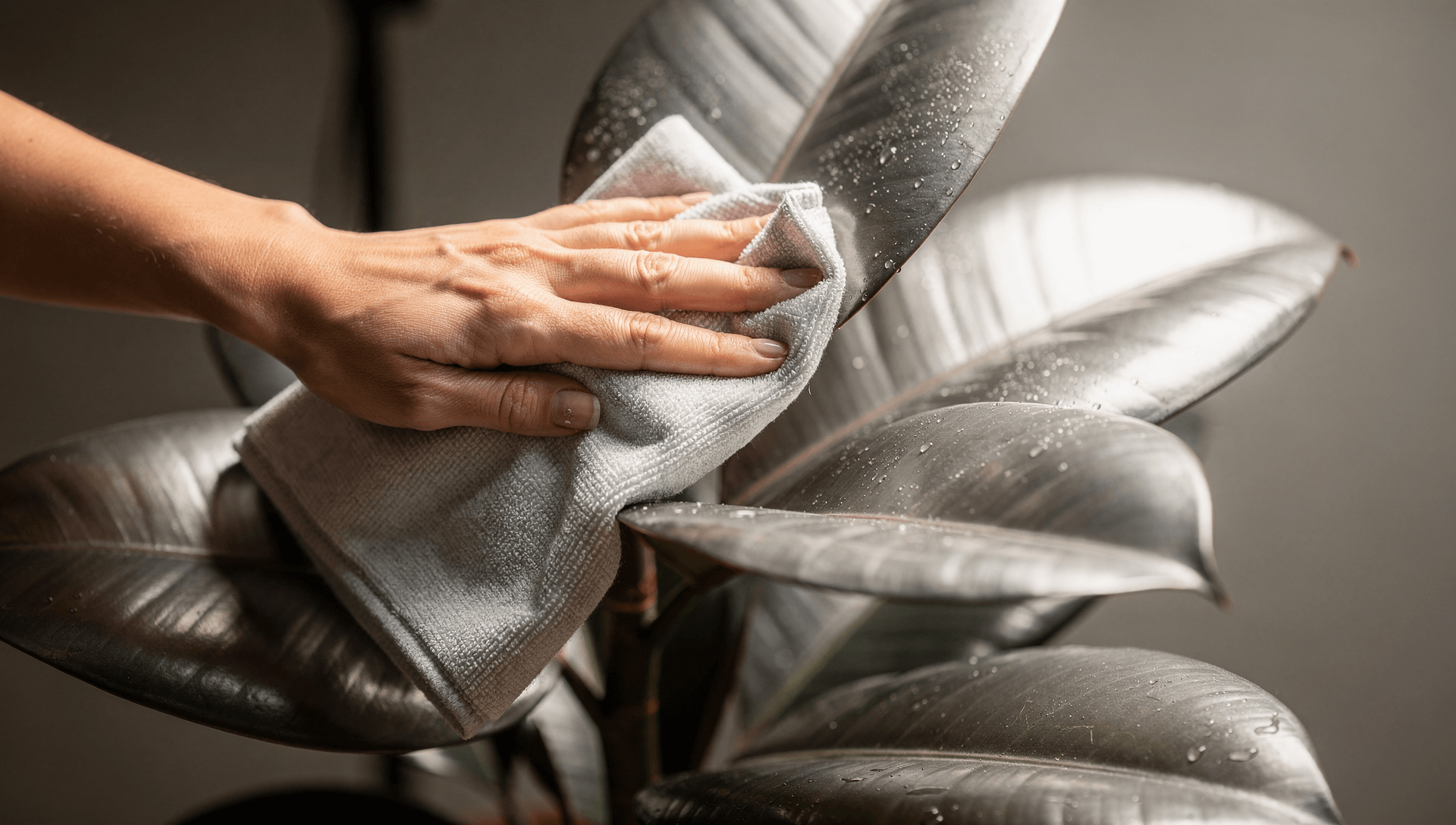 잎이 넓다 보니 먼지가 쉽게 쌓였습니다. 젖은 천으로 잎을 닦아주면 광택이 살아나고, 전체적으로 건강해 보였습니다.