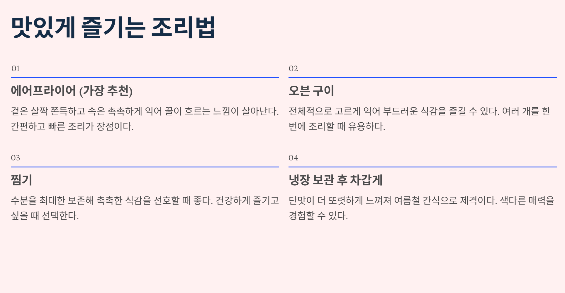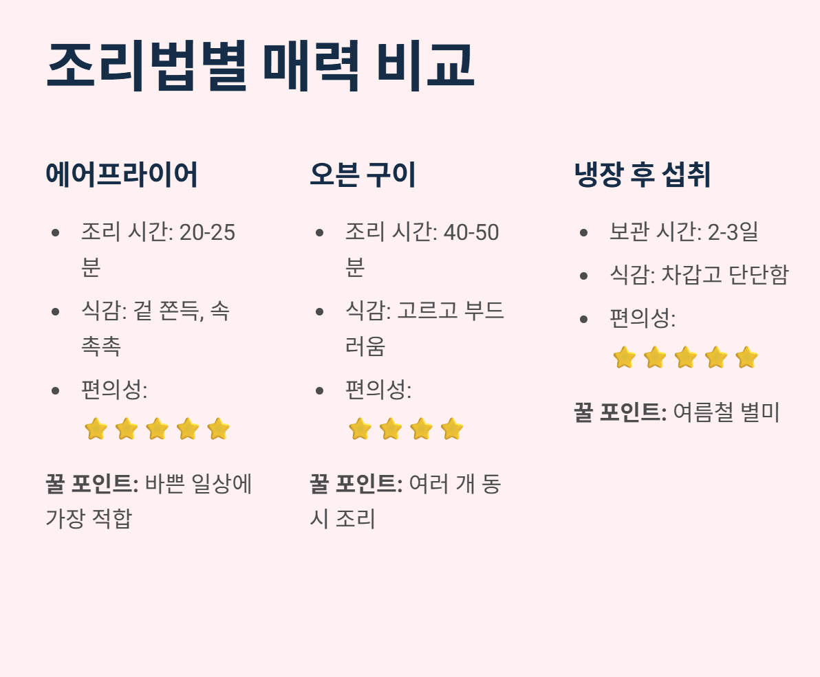 가장 자주 먹는 방법은 에어프라이어였다. 겉은 살짝 쫀득하고 속은 촉촉하게 익어서 꿀이 흐르는 느낌이 살아났다. 오븐이나 찜보다 간편해서 자주 활용하게 됐다, 계속 이 방법을 썼다.