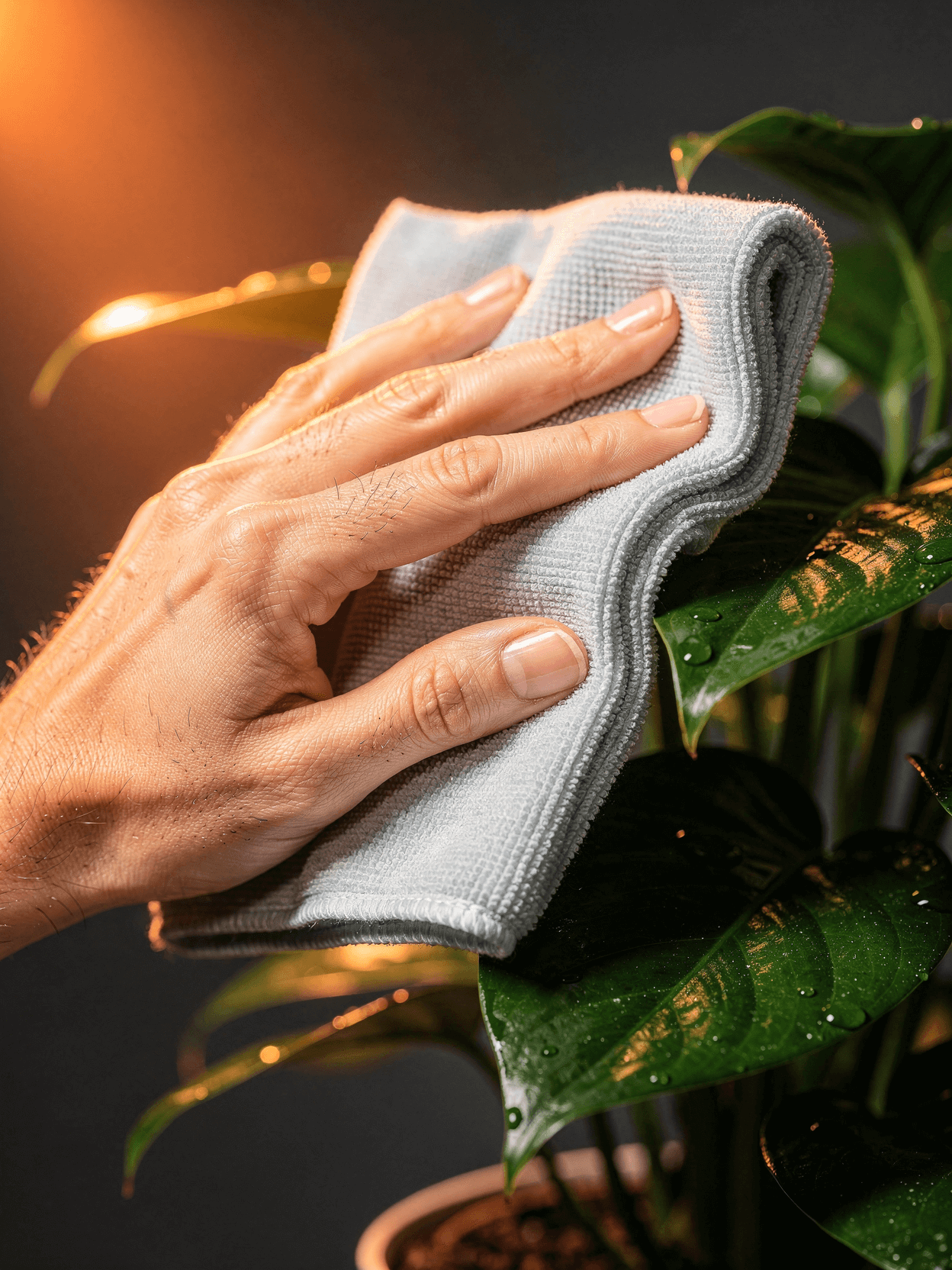 파키라는 잎이 넓어 먼지가 잘 쌓이는 편입니다. 주기적으로 젖은 천으로 잎을 닦아주니 광택이 살아나고 전체적으로 건강해 보였습니다.