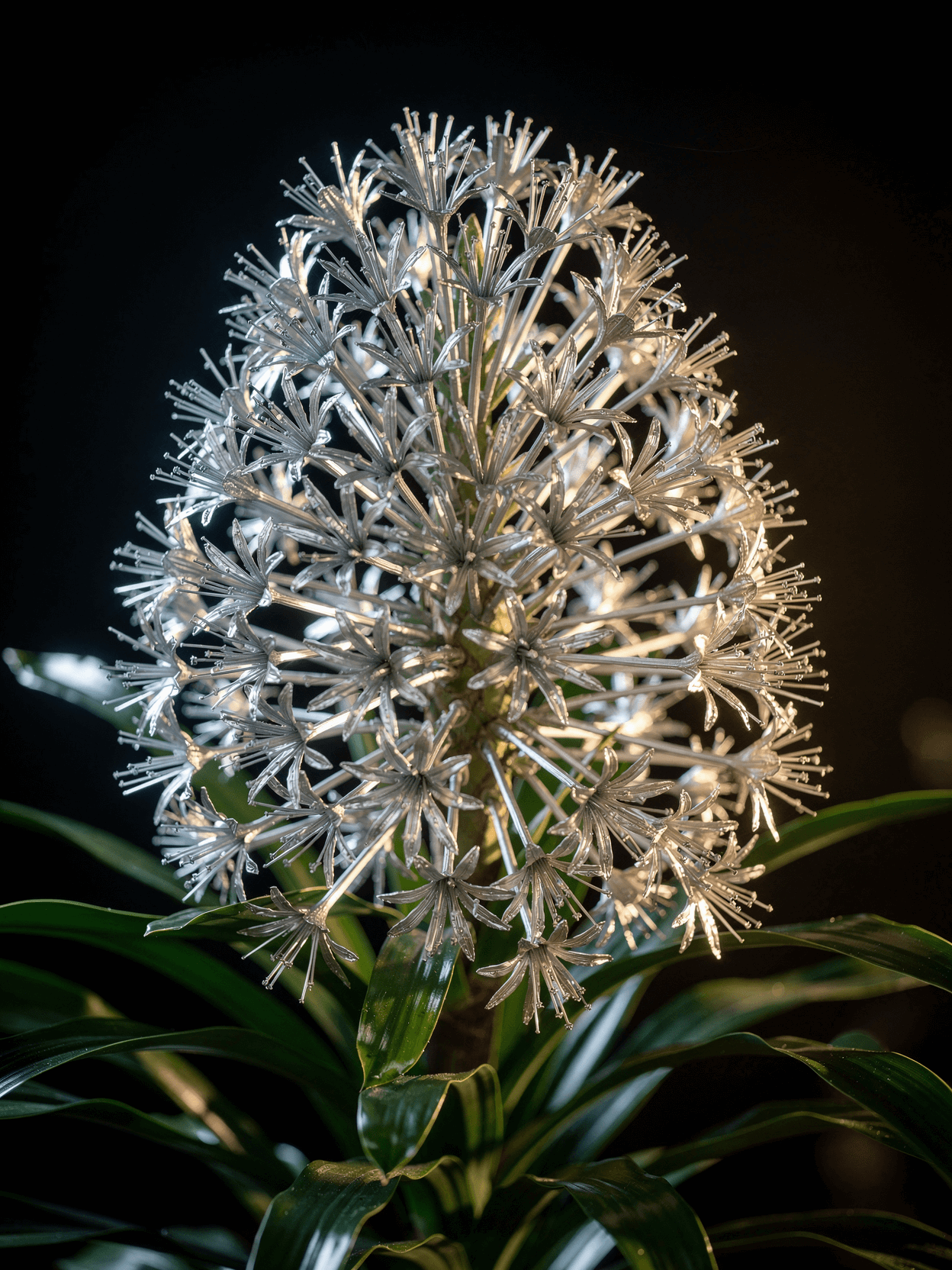 행운목 꽃의 가장 신비로운 점은 낮에는 입을 꾹 다물고 있다가, 밤이 되면 꽃망울을 터뜨린다는 것입니다. 해가 지기 시작하면 작고 하얀 꽃송이들이 하나둘 피어나는데, 이때 퍼지는 향기가 정말 압도적이에요.