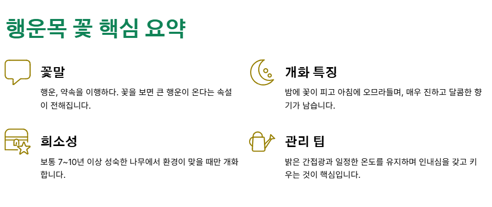 행운목 꽃은 단순히 예쁜 식물의 꽃을 넘어, 오랜 시간 정성을 쏟은 사람에게만 허락되는 특별한 보상 같습니다. 지금 여러분의 베란다나 거실 구석에서 묵묵히 자라고 있는 행운목이 있다면, 오늘 한 번 따뜻한 눈길을 보내주세요.