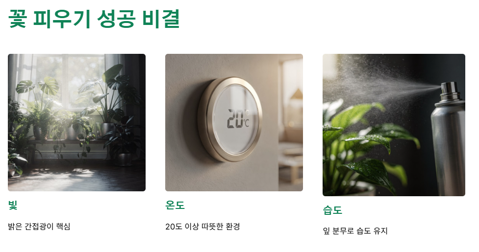 - 관리 팁: 밝은 간접광과 일정한 온도를 유지하며 인내심을 갖고 키우는 것이 핵심.
