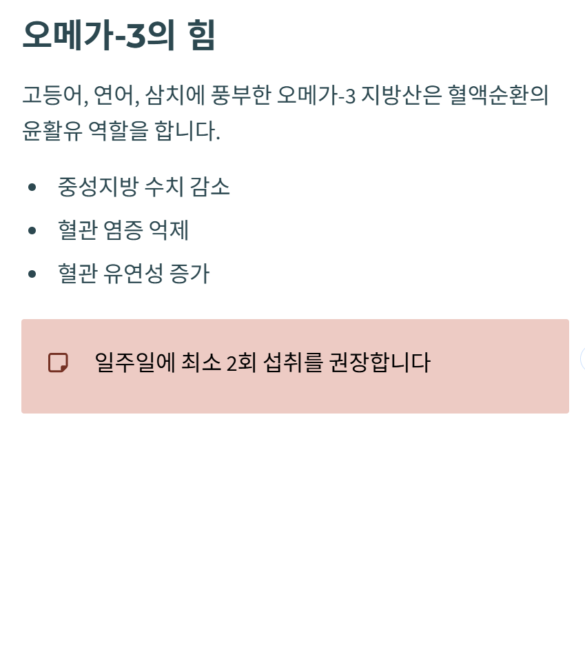 저는 일주일에 최소 두 번은 생선 요리를 챙겨 먹으려고 노력하는데요. 확실히 생선을 자주 먹는 시기에는 아침에 일어날 때 몸이 한결 가볍고 손발 저림도 줄어드는 기분이 들었습니다. 만약 생선을 직접 요리하기 번거롭다면 양질의 영양제로라도 꼭 보충해 주는 것이 혈액순환 관리에 큰 도움이 됩니다.
